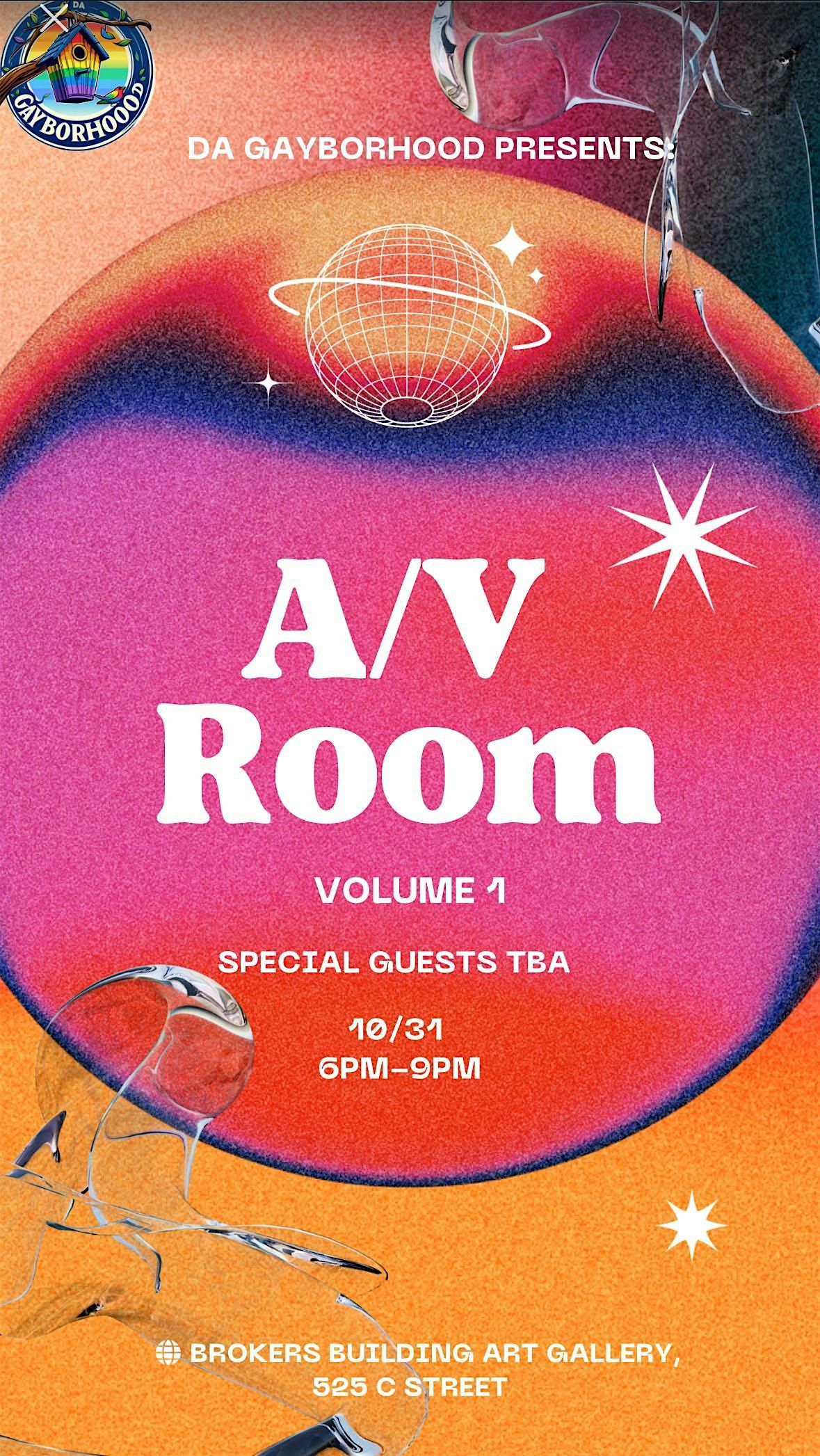 Welcome to the A/V ROOM where you can immerse yourself in art while 3 DJ's spin in this intimate boiler room style experiance at Brokers Art Gallery. This is a great way to meet people and if you are going out to enjoy your halloween night this is a perfect way to pre game.