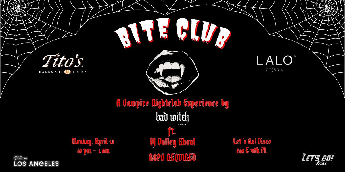 On April 13, get ready for an evening spawned from your darkest dreams as we flip Let's Go! Disco into "Bite Club", a darkly lit vampire nightclub, for one night only! DJ Valley Ghoul will be spinning dark wave, synth and goth cumbia tracksfrom 10PM until 1AM PST. Bringyour best Wednesday Addams and dance into the night or step inside our life-sized coffin for a perfect IG moment.