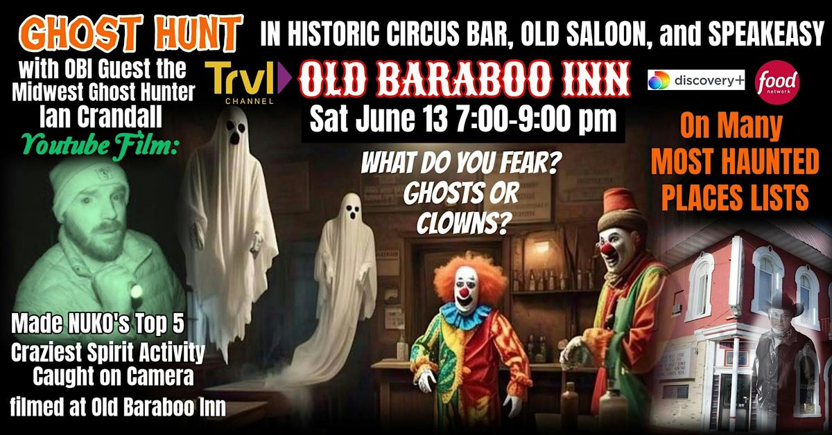 Live Ghost Hunting experience in OLD BARABOO INN. On Travel Channel & Discovery+ with Jack Osbourne & Ghost Brothers. Old Gangster hangoutAbout this Event