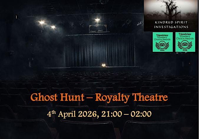 Join Kindred Spirit Investigations for an immersive ghost hunting and paranormal investigation experience at The Royalty Theatre, one of the UK’s most atmospheric historic theatres. Once the doors close and the lights fade, this emotionally charged venue takes on a very different character.