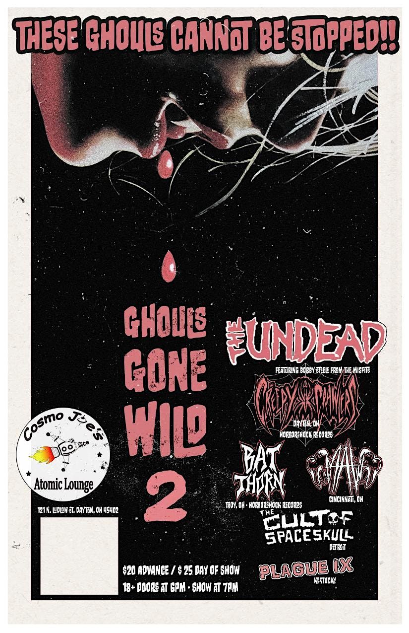 Ghouls Gone Wild 2 . The Sequel to last year's one of a kind event. This year featuring past members of the Misfits and Spooky and Crazy band's from all over. Don't miss it.