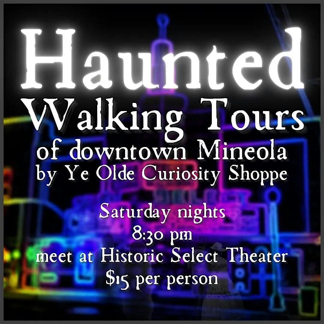 Find out what goes bump in the night, and whole bunch of history, in Mineola, TX! Every Saturday night at 8:30PM we meet in front of the Historic Select Theater at 114 N. Johnson (or across the street at Ye Olde Curiosity Shoppe - 117 N. Johnson) and begin a two hour (sometimes longer) walking journey through the haunted streets and buildings of this historic town! Travel with a professional paranormal investigator! Use the equipment as seen on TV! Go inside some places and participate in experiments designed to communicate with the departed! It's a tour and a hunt combined and it's a heck of a fun way to spend a Saturday night! Tickets are $15 per person. Please, no children under 10yrs because it can get quite spooky. No inebriated customers please. We keep it family friendly!