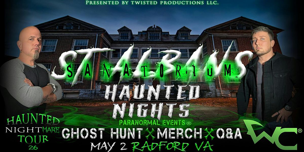 Join the Haunted Nights Crew along with our special guests the Wraith Chasers, Chris Smith and Mike G, for another night of investigating at Virginia's most Haunted Location, St Albans Sanatorium!!!