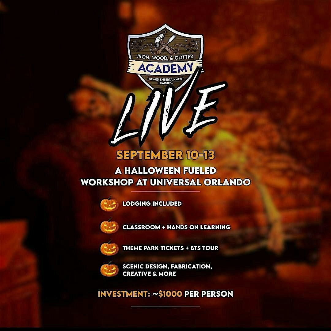Get ready for an awesome weekend at Universal Orlando Resort! Join us on September 10, 2026 at 10:00 AM (Eastern Time) for the Iron, Wood, & Glitter Academy Live event. It's gonna be a fun, hands-on experience for themed entertainment professionals and students alike.
