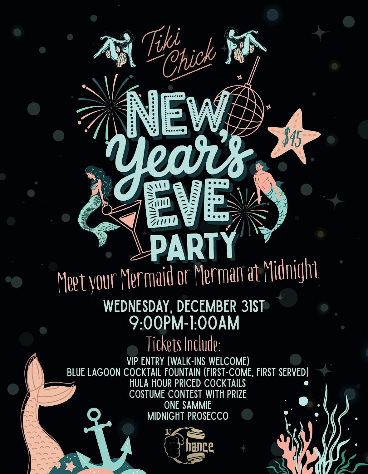 New Years Eve Party ticket includes: Tiki Chick Sammie, Blue Lagoon Cocktail (Limited Flow), best Mermaid/Merman costume contest & more!About this Event