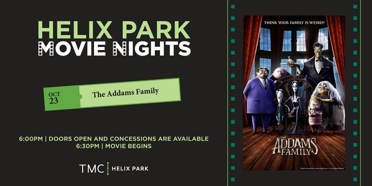 Get spooky in Helix Park with the wonderfully weird Addams Family movie, rated PG. Join us on Friday, October 23, 2026, for a delightfully creepy evening with popcorn and a selection of candies. We ask that you please arrive 10-15 minutes early to grab your snacks and find the perfect spot before the movie begins.