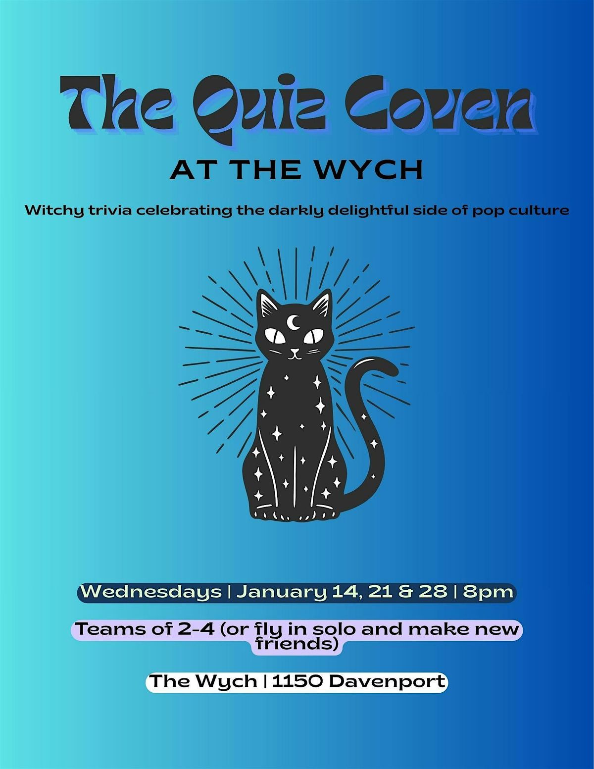 A spooky, witchy, weekly trivia night celebrating the darkly delightful side of pop culture!!About this Event