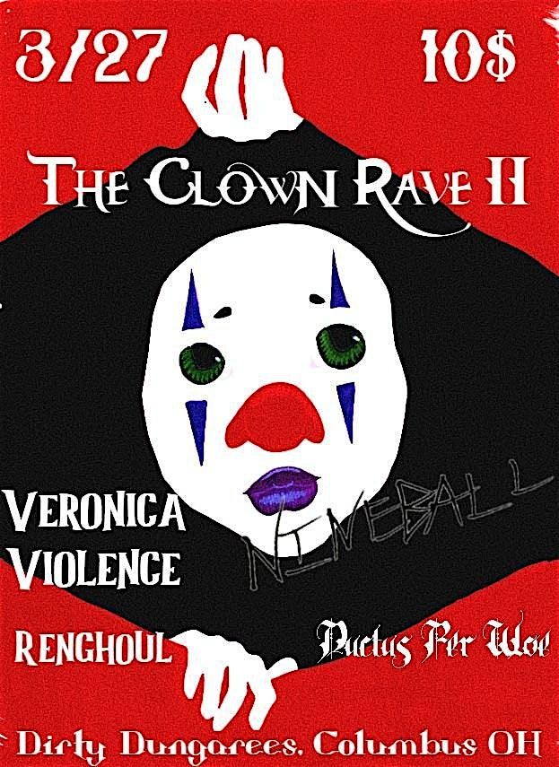 Veronica Violence, Nineball, Rhenghoul, and Ductus per Woe are celebrating halfway to halloween with the clown rave prt 2 at Dirty DungareesEvent Location