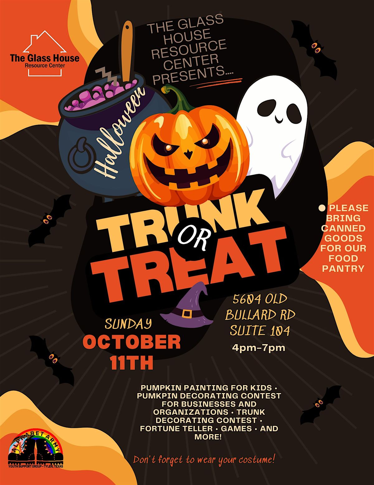 Join us at The Glass House Trunk or Treat for spooky fun, candy, and cool costumes in person!About this Event