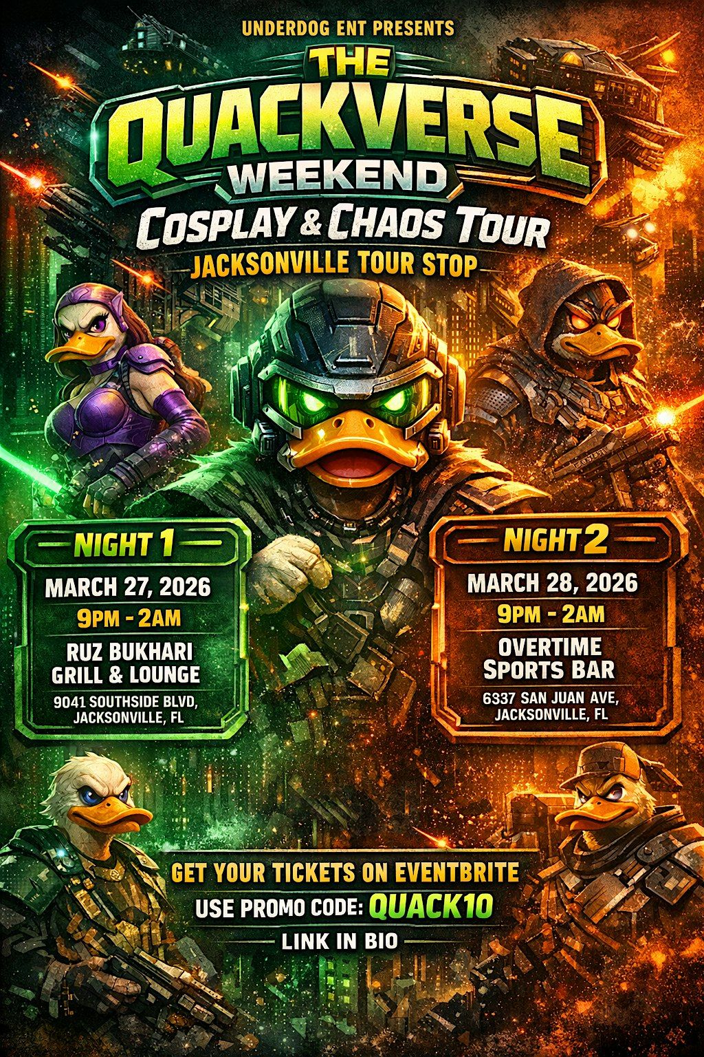The QuackVerse Weekend is a 2-night Cosplay & Chaos Tour stop in Jacksonville! Built around the worlds of DJ Quack Attack,About this Event