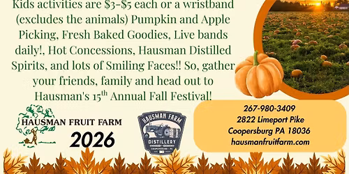 Fall Farm Festival Sept 26-Nov 1, 2026